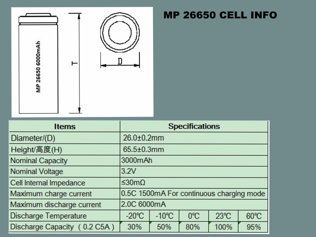 LiFePo4 Battery 25.6V 6Ah | 26650 3.2V 3000mAh 8S2P Battery Specification |